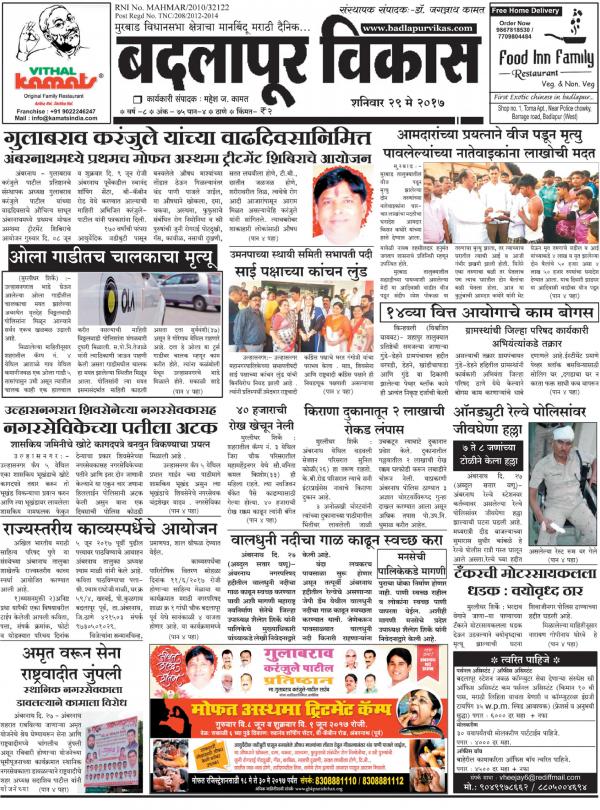 Badlapur Vikas Today News / All badlapur news updates and notification on our mobile app available on android and itunes.