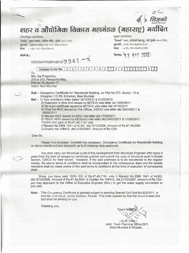 Oc Certificate Mumbai : An occupation certificate, or an oc, is a document issued by the municipal corporation or other the report estimated that about 6,000 buildings in mumbai without an oc in which about 1 lakh families.